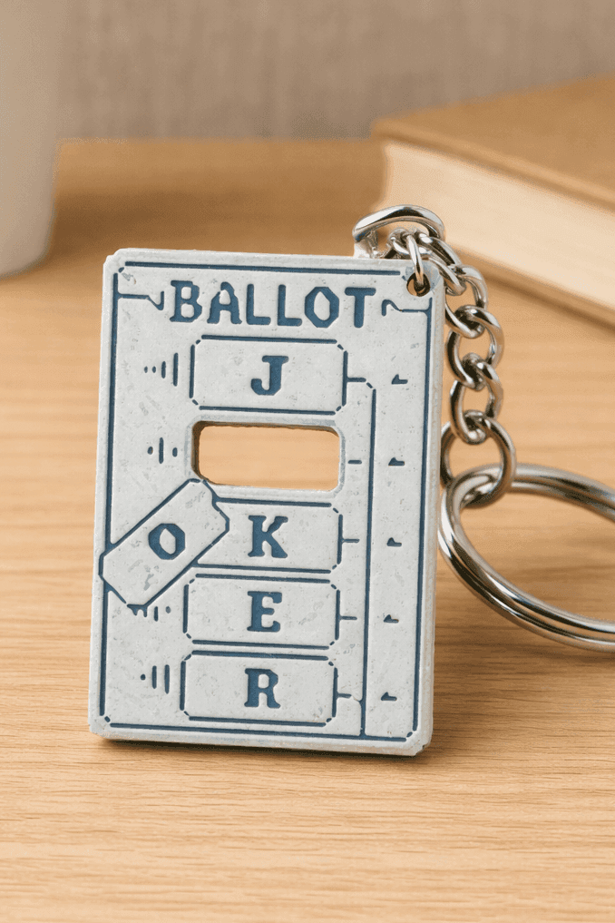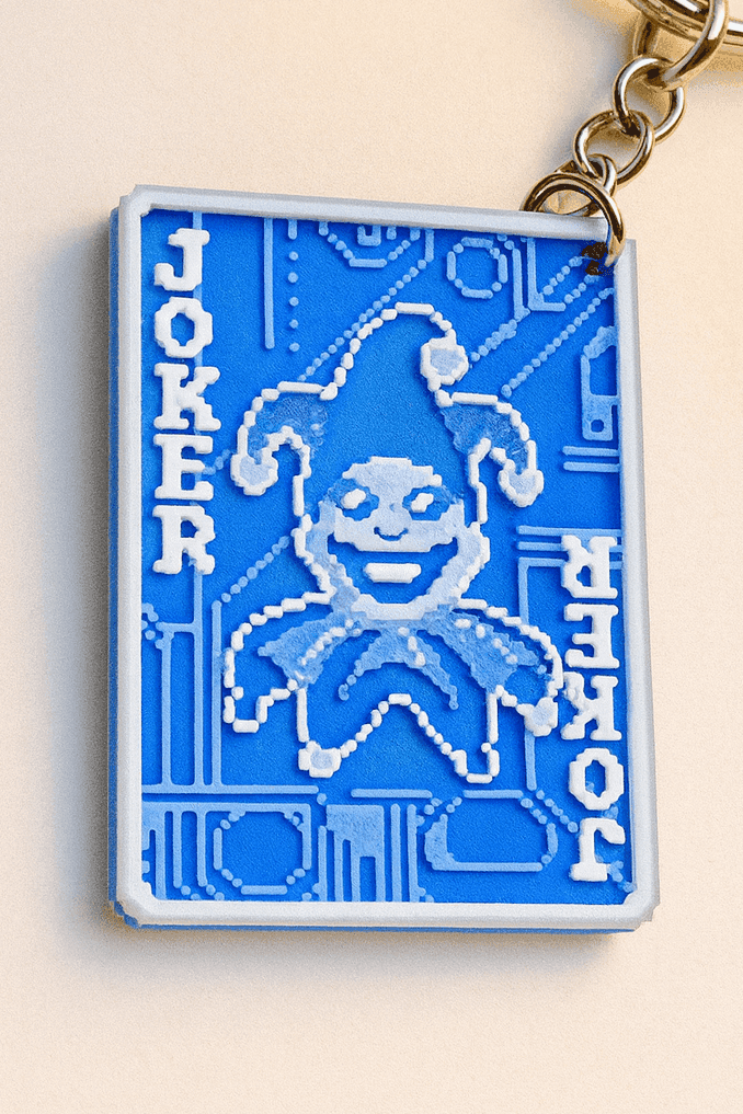 Balatro llaveros ligeros y resistentes para uso diario. El relieve del Joker se reconoce al tacto y no raya superficies. La joya de la corona.