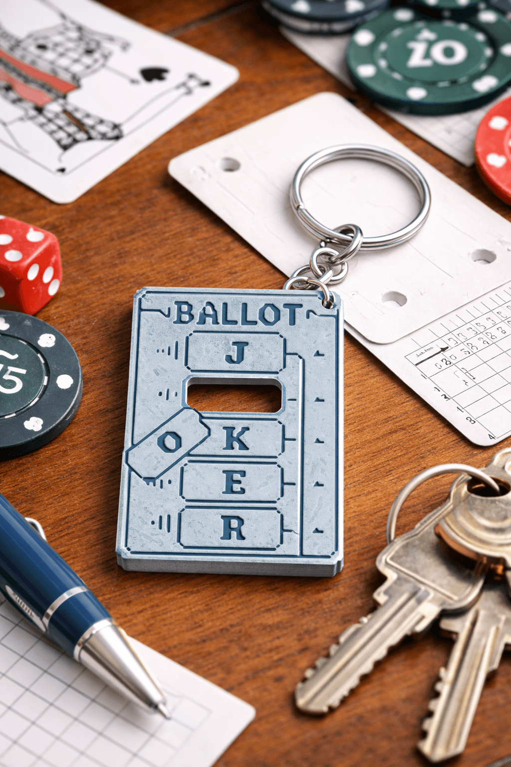 Inspirado en el Joker Hanging Chad este llavero de Balatro es perfecto para ti si buscas una forma original de decorar tus llaves.