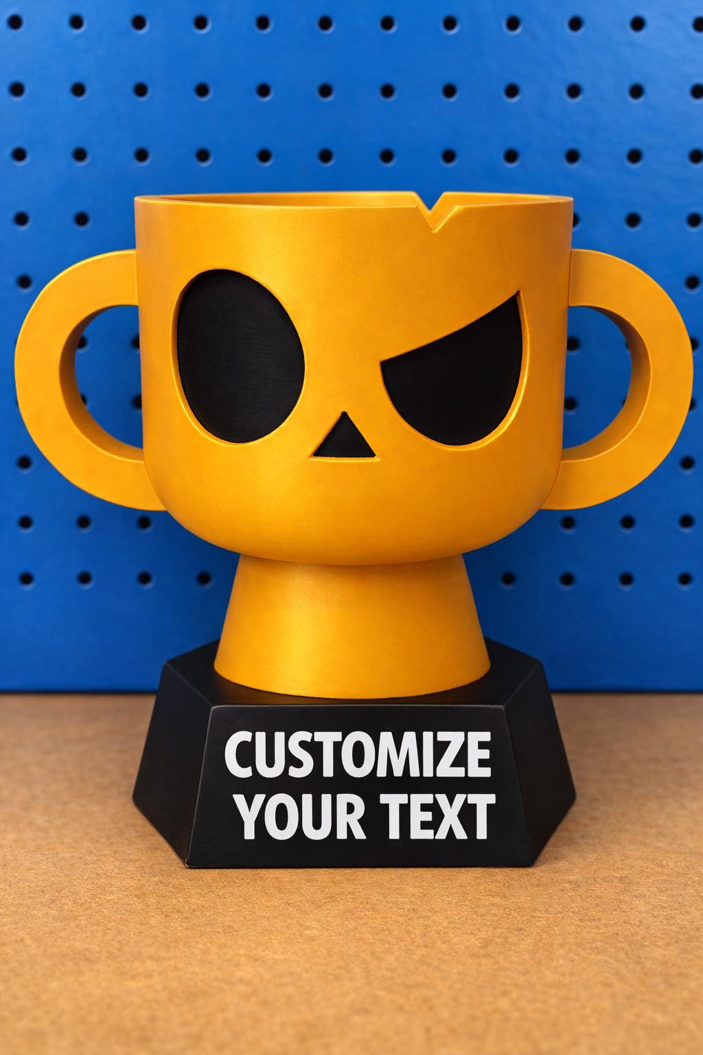 Convierte un momento gaming en un trofeo real para escritorio. Este trofeo inspirado en Brawl Stars puede personalizarse con un nombre o texto corto, lo que lo convierte en un regalo divertido, un premio para competiciones o fiestas, o una pieza de exposición para coleccionistas.